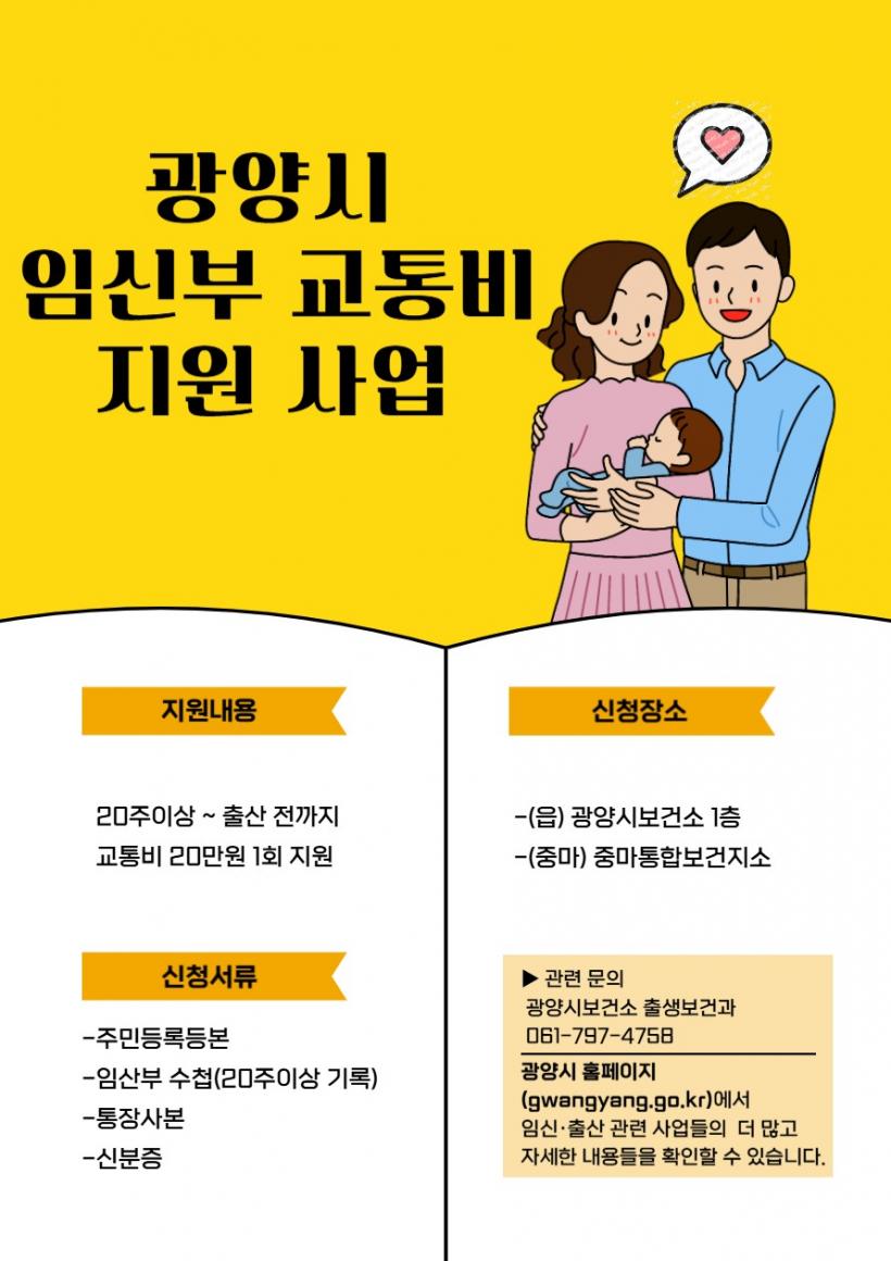 [°ø°£´º½º = ±è¿ëÁø±âÀÚ] ±¤¾ç½Ã´Â ÀӽźÎÀÇ À̵¿ ÆíÀǸ¦ ³ôÀ̰í Ãâ»ê °¡Á¤ÀÇ °æÁ¦Àû ºÎ´ãÀ» ´ú¾îÁÖ±â À§ÇØ Àӽźθ¦ ´ë»óÀ¸·Î 20¸¸ ¿øÀÇ ±³Åëºñ¸¦ Áö¿øÇÑ´Ù°í 9ÀÏ ¹àÇû´Ù.