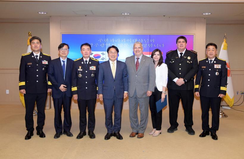 ·Î¸Þ·Î ´ë»ç´Â ¡°Çѱ¹Àº ÆÄ¶ó°úÀÌ ¼Ò¹æ½Ã¼³ °³¼±¿¡ °¡Àå ¸¹ÀÌ Áö¿ø¡¤Çù·ÂÇØÁØ ³ª¶óÀÌ´Ù. ƯÈ÷ 2018³âºÎÅÍ ½ÃÀÛµÈ ±¤ÁÖ¿ÍÀÇ Àο¬Àº ¿ìÈ£°ü°è¸¦ ³Ñ¾î °¡Á·, Ä£±¸ °°Àº Ä£±Ù°¨À» ´À³¢°Ô ÇÑ´Ù¡±¸ç ¡°¼Ò¹æÂ÷·®, ±³À°¿¬¼ö, ±â¼ú ±³·ù¹æ¾È µî ±¤ÁÖ½ÃÀÇ Áö¿øÀ¸·Î ½Ã¹Î ¾ÈÀüÀ» Áö۴µ¥ ¸¹Àº µµ¿òÀÌ µÆ´Ù. ¾ÕÀ¸·Îµµ Áö¼ÓÀûÀÎ ±³·ù¸¦ ÅëÇØ ±íÀº ¿ìÁ¤À» À̾±æ ¹Ù¶õ´Ù¡±°í ¹àÇû´Ù.