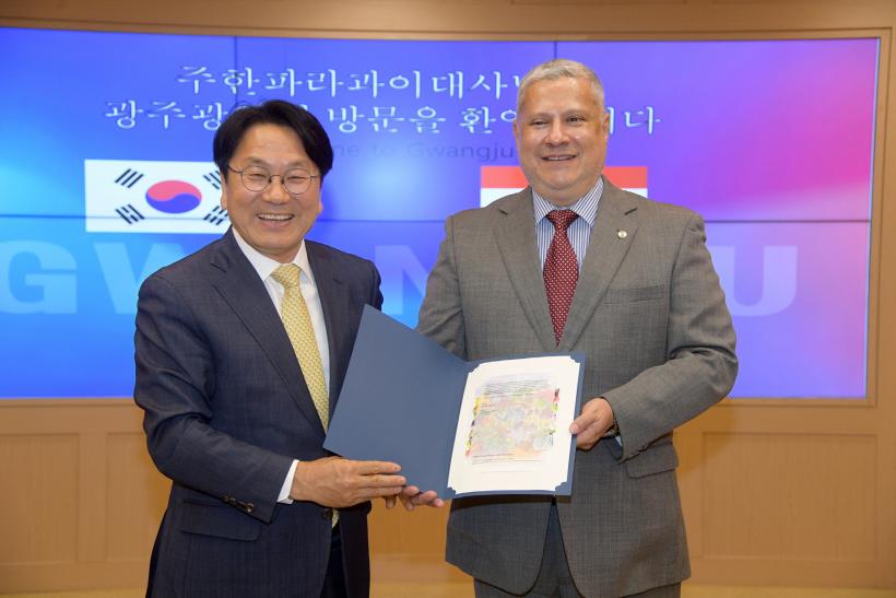 °±âÁ¤ ±¤ÁÖ±¤¿ª½ÃÀåÀº 9ÀÏ ¿ÀÈÄ ½Ãû ºñÁî´Ï½º·ë¿¡¼ ¹Ì°Ö ¾ÓÇï ¿ì¹ßµð³ë ·Î¸Þ·Î ¾Ë¹Ù·¹½º ÁÖÇÑ ÆÄ¶ó°úÀÌ ´ë»ç¿Í Á¢°ßÇß´Ù.