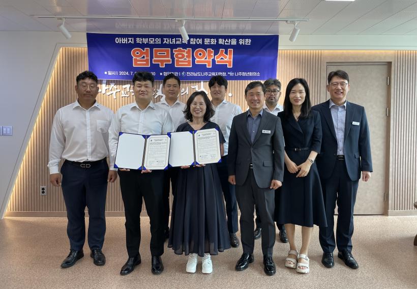 [°ø°£´º½º = ±è¼ö±Ù±âÀÚ] Àü¶ó³²µµ³ªÁÖ±³À°Áö¿øÃ»(±³À°Àå º¯Á¤ºó)Àº Áö³ 9ÀÏ ³ªÁÖ±³À°Áö¿øÃ» ±³À°Àå½Ç¿¡¼ ³ªÁÖû³âȸÀǼÒ(ȸÀå ¿Í ¾Æ¹öÁö ÇкθðÀÇ Àڳ౳À° Âü¿©¹®È È®»êÀ» À§ÇÑ ¾÷¹«Çù¾à(MOU)À» ü°áÇß´Ù.