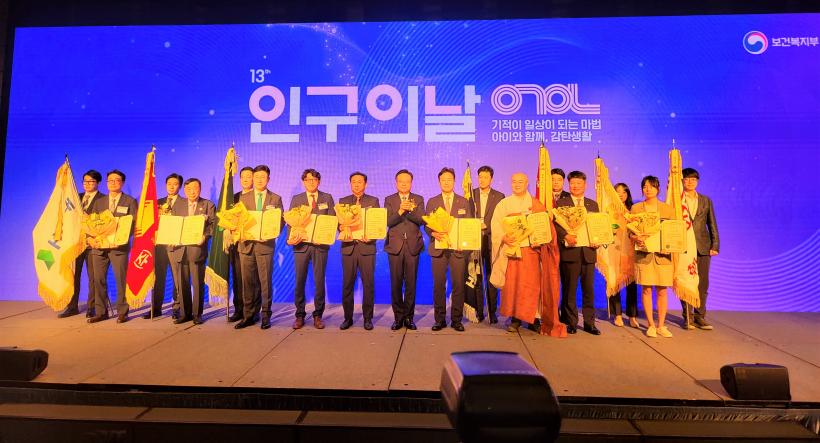 [°ø°£´º½º = ±è¼ö±Ù±âÀÚ] Àü¶ó³²µµ´Â 11ÀÏ ¿þ½ºÆ¾ Á¶¼± ¼¿ï¿¡¼ ¿¸° º¸°Çº¹ÁöºÎÀÇ Á¦13ȸ Àα¸ÀÇ ³¯ ±â³ä½Ä¿¡¼ ¡®Àü³²µµ¡¤½Ã±º Ãâ»ý¼ö´ç¡¯, ¡®Àü³²Çü ¸¸¿øÁÖÅᯠµî Á¤Ã¥ ÃßÁø °ø·Î·Î ±¤¿ª´Üü¿¡¼ À¯ÀÏÇÏ°Ô Àα¸Á¤Ã¥ À¯°ø ´ëÅë·É ±â°ü ǥâÀ» ¼ö»óÇß´Ù.