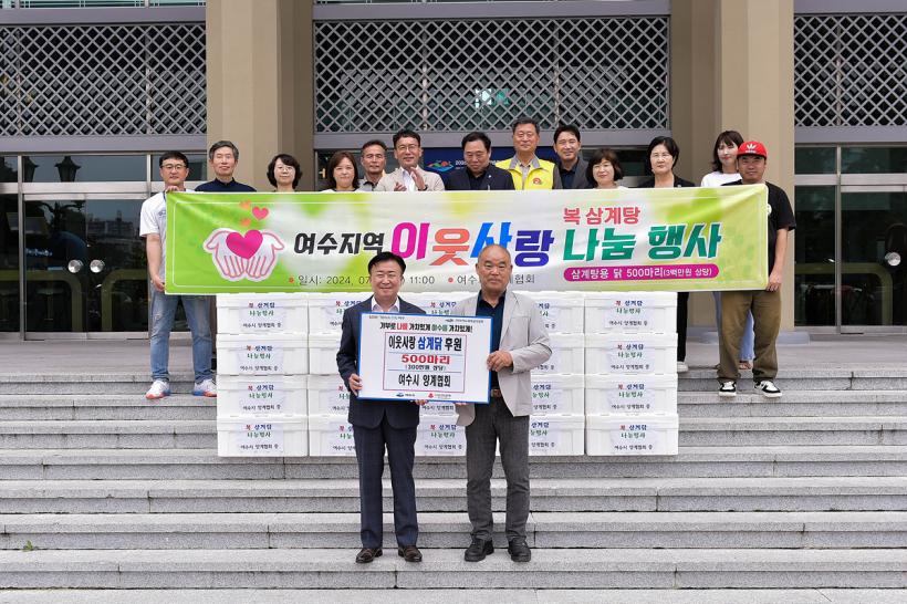 [°ø°£´º½º = ±è¿ëÁø±âÀÚ] ¿©¼ö¾ç°èÇùȸ(ȸÀå À̱⿬)°¡ Áö³ 11ÀÏ ¿ÀÀü ´Ù°¡¿À´Â Ãʺ¹À» ¸Â¾Æ 300¸¸ ¿ø »ó´çÀÇ »ï°èÅÁ¿ë »ý´ß 500¸¶¸®¸¦ ÈÄ¿øÇß´Ù.