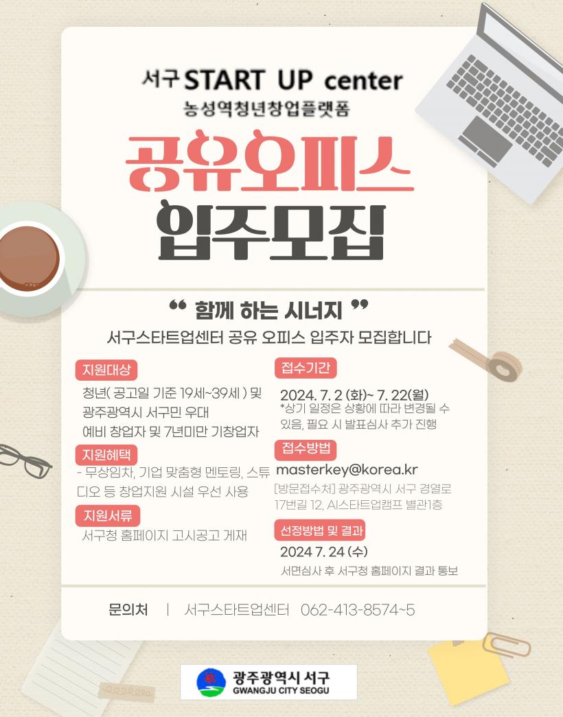 [°ø°£´º½º = ±è´ë¿µ±âÀÚ] ±¤ÁÖ±¤¿ª½Ã ¼±¸(±¸Ã»Àå ±èÀ̰)°¡ ¿À´Â 22ÀϱîÁö ¡®¼±¸ ½ºÅ¸Æ®¾÷ ¼¾ÅÍ °øÀ¯»ç¹«½Ç ÀÔÁÖ±â¾÷¡¯6ÆÀÀ» ¸ðÁýÇÑ´Ù.