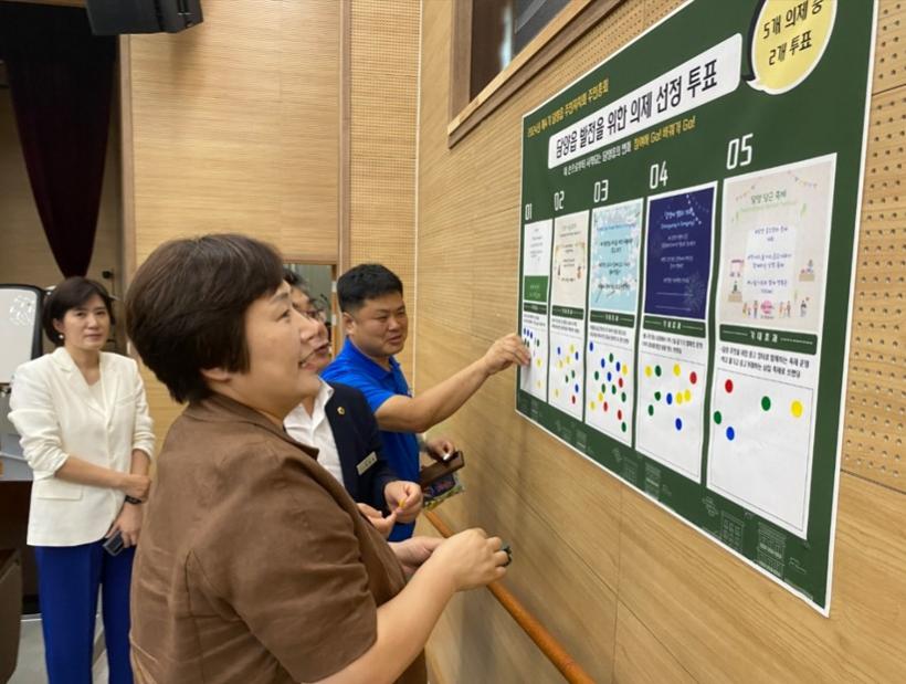 ÃÑ 150¸íÀÇ ¼±°ÅÀÎÀÌ Âü¿©ÇÑ ÅõÇ¥ °á°ú, '´ã¾ç ²É±æ ¸¸µé±â'°¡ 78Ç¥¸¦ ¾ò¾î ÃÖ¿ì¼± ÃßÁø ÀÇÁ¦·Î ¼±Á¤µÇ¾ú´Ù. À̾î '°¡À»À½¾Çȸ'°¡ 74Ç¥, '´ã¾ç¿¡ º°º¸·¯ °¡ÀÚ'°¡ 53Ç¥, '´ã¾ç ´ç±ÙÃàÁ¦'°¡ 52Ç¥, ±×¸®°í '´ã¾çÁݱë'ÀÌ 43Ç¥¸¦ °¢°¢ ¾ò¾î ¼øÀ§¿¡ ¿Ã¶ú´Ù.