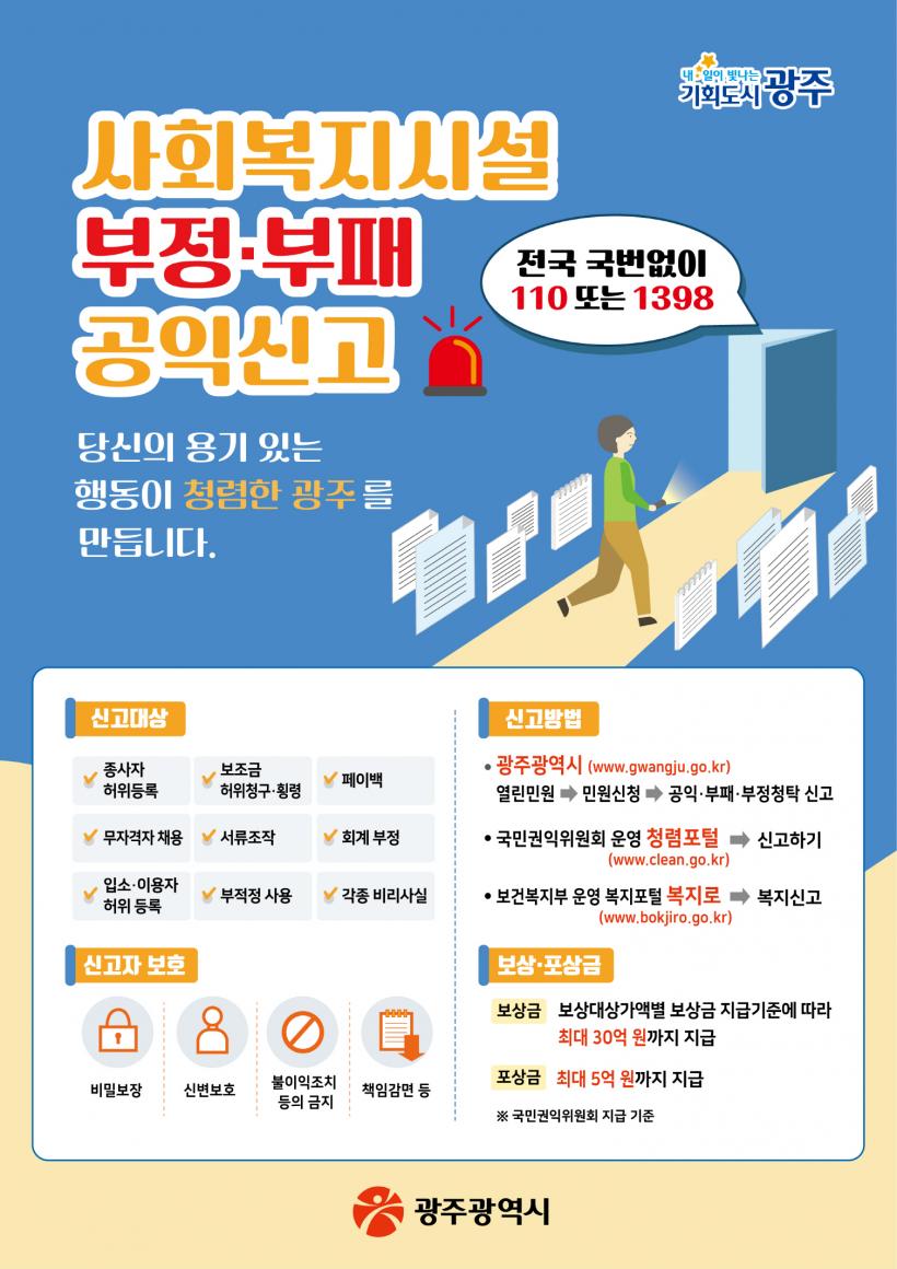 ½Å°í¹æ¹ýÀº ¡ã±¤Áֽà °øÀÍ¡¤ºÎÆÐ¡¤ºÎÁ¤ ûʽŰí(www.gwangju.go.kr) ¡ã±¹¹Î±ÇÀÍÀ§¿øÈ¸ û·ÅÆ÷ÅÐ ºÎÆÐ°øÀͽŰí(www.clean.go.kr) ¡ãº¸°Çº¹ÁöºÎ º¹ÁöÆ÷ÅÐ º¹Áö·Î(www.bokjiro.go.kr) ¡ã±¹¹ø ¾øÀÌ 110 ¶Ç´Â 1398·Î ÀüÈÇÏ¸é µÈ´Ù.