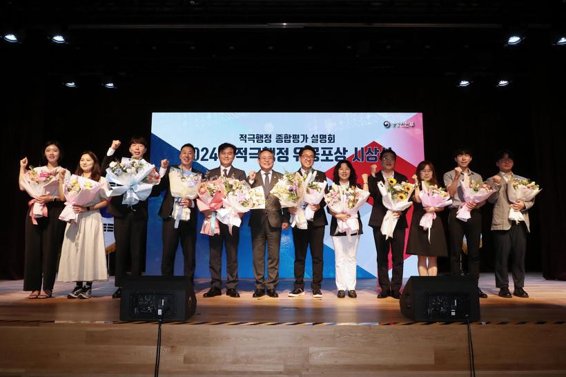 Áö³ 11ÀÏ Á¤ºÎ¼¼Á¾Ã»»ç Áß¾Óµ¿ ´ë°´ç¿¡¼ ¿¸° ¡®Àû±ØÇàÁ¤ À¯°ø Á¤ºÎÆ÷»ó¡¯ ¼ö¿©½Ä¿¡¼ °í±âµ¿ ÇàÁ¤¾ÈÀüºÎ Â÷°üÀº Àå¸íÈ »ç¹«°ü¿¡°Ô Á¤ºÎ Æ÷»óÀ» ¼ö¿©Çß´Ù. ¿ÃÇØ ¼ö»óÀÚ´Â ±¤ÁÖ½Ã ÈÆÀå 1¸íÀ» Æ÷ÇÔÇØ ÃÑ 17¸í(ÈÆÀå 2, Æ÷Àå 3, ´ëÅë·Éǥâ 2, ±¹¹«ÃѸ®Ç¥Ã¢ 2, Àå°üǥâ 8)¿¡°Ô ¼ö¿©Çß´Ù.