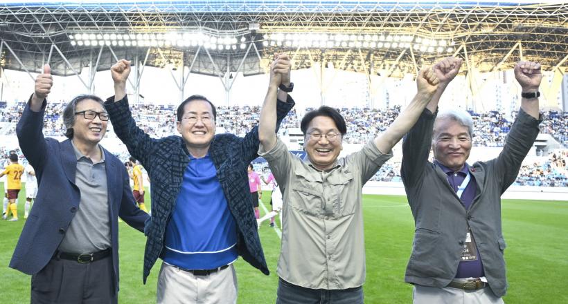 ° ½ÃÀå°ú È« ½ÃÀåÀº 21ÀÏ Àú³á ´ë±¸½Ã DGB´ë±¸ÀºÇàÆÄÅ©¿¡¼ ¿¸° K¸®±× ¡®±¤ÁÖFC-´ë±¸FC Ã౸ °æ±â¡¯¸¦ °ü¶÷Çß´Ù. ¾ç ½ÃÀåÀº °æ±â ½ÃÀÛ Àü ±×¶ó¿îµå¿¡ ¿Ã¶ó °æ±âÀåÀ» ãÀº °ü¶÷°´µé¿¡°Ô ÀλçÇß´Ù. ¾ç ½ÃÀåÀÌ ½ºÆ÷Ã÷ °æ±â¸¦ ÇÔ²² °ü¶÷ÇÑ °ÍÀº À̹øÀÌ Ã³À½ÀÌ´Ù.