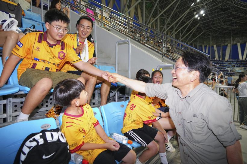 À̳¯ ° ½ÃÀåÀº ±¤ÁÖFC ¿øÁ¤ÆÒµéÀ» ÀÀ¿øÇϱâ À§ÇØ ¿øÁ¤¼®À» Á÷Á¢ ã¾Æ ÀλçÇϰí, ¡°±¤ÁÖFC¸¦ º¯ÇÔ¾øÀÌ »ç¶ûÇØ ´Þ¶ó¡±°í ÀüÇß´Ù.