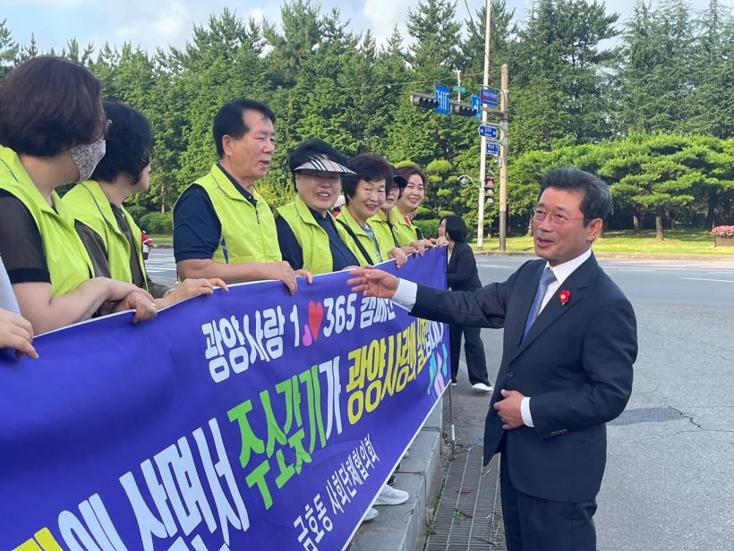±ÝÈ£µ¿ ÅëÀåÇùÀÇȸ, ÁÖ¹ÎÀÚÄ¡ÇùÀÇȸ, ¹ßÀüÇùÀÇȸ, ¹Ù¸£°Ô»ì±âÇùÀÇȸ µî 12°³ »çȸ´Üü¿Í ±ÝÈ£µ¿»ç¹«¼Ò Á÷¿ø µî 100¿© ¸íÀº À¯µ¿ Àα¸°¡ ¸¹Àº ¿ÀÀü 7½ÃºÎÅÍ ¿ÀÀü 8½Ã±îÁö ±¤¾ç½ÃÀÇ ÁßÁ¡ »ç¾÷ÀÌ ¼Ò°³µÈ Çö¼ö¸·À» µé°í ¿À°¡´Â ½Ã¹Îµé¿¡°Ô ½ÃÃ¥À» È«º¸Çß´Ù.