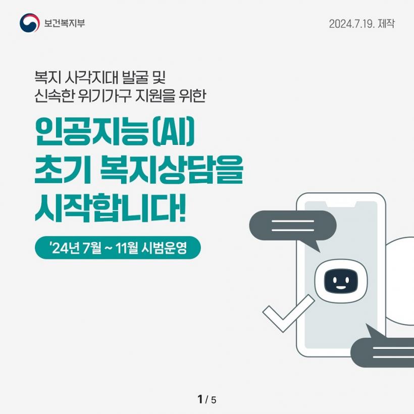 ½Ã´Â º¸°Çº¹ÁöºÎ ÁÖ°ü ¡®AI Ȱ¿ë º¹Áö»ç°¢Áö´ë ¹ß±¼ Ãʱâ»ó´ã ½Ã¹ü»ç¾÷¡¯¿¡ 2´Ü°è ½Ã¹ü»ç¾÷ ÁöÀÚü·Î ¼±Á¤µÇ¾î 1ÀÎ °¡±¸ Áõ°¡, °í·ÉÈ µî »çȸÀû À§Çè ¿äÀÎ Áõ°¡¿¡ ¹ßºü¸£°Ô ´ëÀÀÇϰí ÀÖ´Ù.