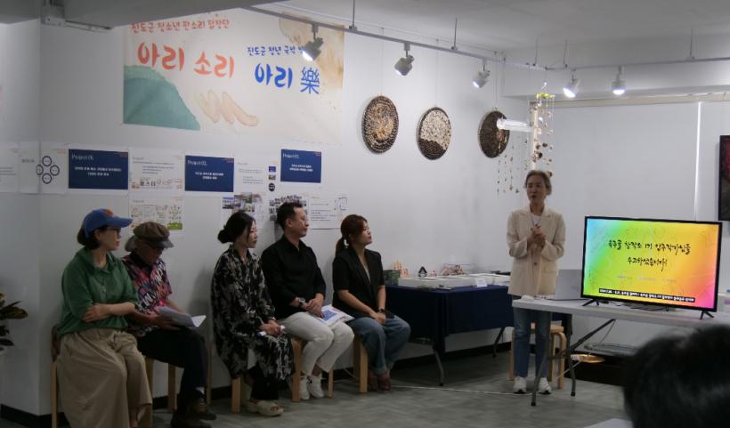 Âü¼®ÇÑ ÀÔÁÖÀÛ°¡µéÀº °¢ÀÚÀÇ Ã¢ÀÛ¹°À» Àü½ÃÇÏ°í ´Ù¸¥ ÀÛ°¡µé°úÀÇ Çù¾÷ °úÁ¤¿¡ ´ëÇÑ °Íµµ ¼³¸íÇß´Ù. À̵éÀº ÁøµµÀ¾ »Ó¸¸ ¾Æ´Ï¶ó ´õ ³ª¾Æ°¡ Áøµµ±º ÀüüÀÇ ¹®È¿¹¼ú Ȱ¼ºÈ¿¡ À̹ÙÁöÇÒ ¹æ¾È°ú ÇâÈÄ °èȹµµ ³íÀÇÇϰí ÀÖÀ½À» ¹àÇû´Ù.
