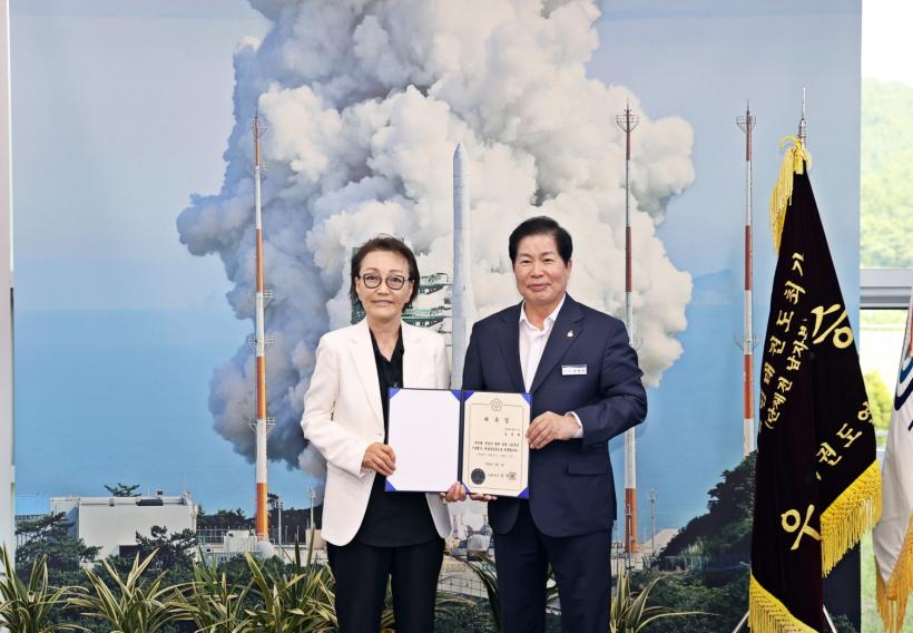 [°ø°£´º½º = ±è¿ëÁø±âÀÚ] °íÈﱺ(±º¼ö °ø¿µ¹Î)Àº ±èÁ¤Èñ ±³¼ö¸¦ ¿ÃÇØ 11¿ù ¿¸®´Â ¡®Ãµ°æÀÚ È¹é ź»ý 100Áֳ⠱â³äÇà»ç¡¯¿¡ ¿¹¼ú ÃѰ¨µ¶À¸·Î ¼±ÀÓÇϰí À§ÃËÀåÀ» Àü´ÞÇß´Ù°í ¹àÇû´Ù.
