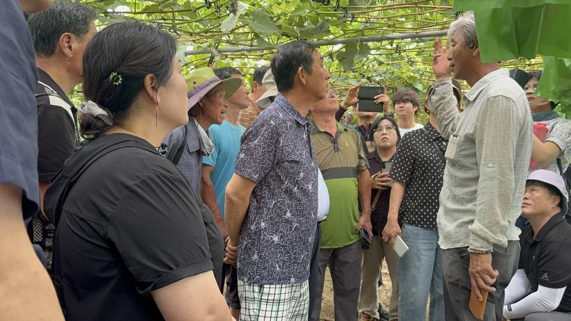 À̳¯ °ÀǸ¦ ÁøÇàÇÑ ¹Ú¿ëÇÏ ´ëÇ¥´Â ³ó¾÷±â¼ú ¸íÀÎÀ¸·Î, ¼öÃâ ÀûÇÕ ±¹»ê Æ÷µµ ǰÁ¾À» ¼±¹ßÇϱâ À§ÇÑ ½ÅǰÁ¾ Æ÷µµ ½Ã¹ü Àç¹è ¹× À°Á¾ ¿¬±¸¸¦ ÁøÇàÇϰí ÀÖ´Ù.