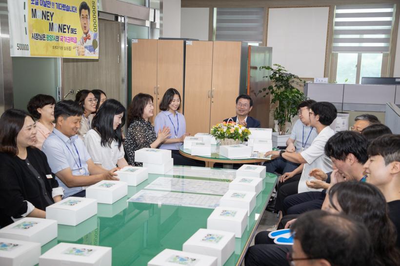 Á¤ÀÎÈ ±¤¾ç½ÃÀåÀº ¿¹»êÀÇ ¾öÁ¤ÇÑ ÁöÃâ ¹× Á¤È®ÇÑ ÀÚ±Ý ¼ö±ÞÀ» ÅëÇØ Àû±â »ç¾÷ ÃßÁøÀ» Áö¿øÇϰí Áö¿ª¾÷ü¿Í »ó»ý, ¼ÒÅëÇÏ´Â °è¾àÇàÁ¤À» ÃßÁøÇÏ´Â ¡®È¸°è°ú¡¯¸¦ ã¾Æ ±¤¾ç½Ã ¸¶½ºÄÚÆ® ¸Åµ¹ÀÌ¿Í ÇÔ²² °£½ÄÀ» ³ª´²ÁÖ¸ç Á÷¿øÀÇ ³ë°í¸¦ °Ý·ÁÇÏ°í ´ëÈÇÏ´Â ½Ã°£À» °¡Á³´Ù.