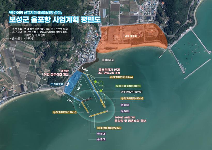 º¸¼º À²Æ÷Ç×Àº 445¾ï ¿øÀ» ÅõÀÔÇØ ¡ã¹æÆÄÁ¦ ¿¬Àå ¹× È®Àå 560m ¡ãÀ̾ÈÁ¦ ¼³Ä¡ 220m µî »ó½Ã Á¢¾ÈÀÌ °¡´ÉÇϰí ÇÇÇ× ±â´ÉÀ» °®Ãá ¾îÇ×À¸·Î °³¹ßµÈ´Ù. ÇöÀç ÃßÁø ÁßÀÎ À²Æ÷ÇØ¾çº¹ÇÕ¼¾ÅÍ, ¼ö»êÄÞÇ÷º½º µî°ú ¿¬°èÇØ ÇØ¾ç·¹Àú°ü±¤ÀÇ Áß½ÉÁö·Î °Åµì³¯ Àü¸ÁÀÌ´Ù.
