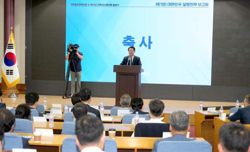 ¡®RE100 Àü±¹ ´ëÇб³ ±³¼öÇùÀÇȸ Ãâ¹ü½Ä¡¯À» °âÇÑ Æ÷·³¿¡¼´Â ±Û·Î¹ú ½ºÅÄ´Ùµå·Î¼ RE100 ¼±Á¦Àû ´ëÀÀÀ» À§ÇÑ ±¹°¡Àû ´ëÃ¥À» ³íÀÇÇßÀ¸¸ç, RE100°ú Àç»ý¿¡³ÊÁö¸¦ ¼±µµÇÏ´Â Àü³²µµÀÇ ´Ù¾çÇÑ ¼º°ø»ç·Êµµ ¼Ò°³µÆ´Ù.
