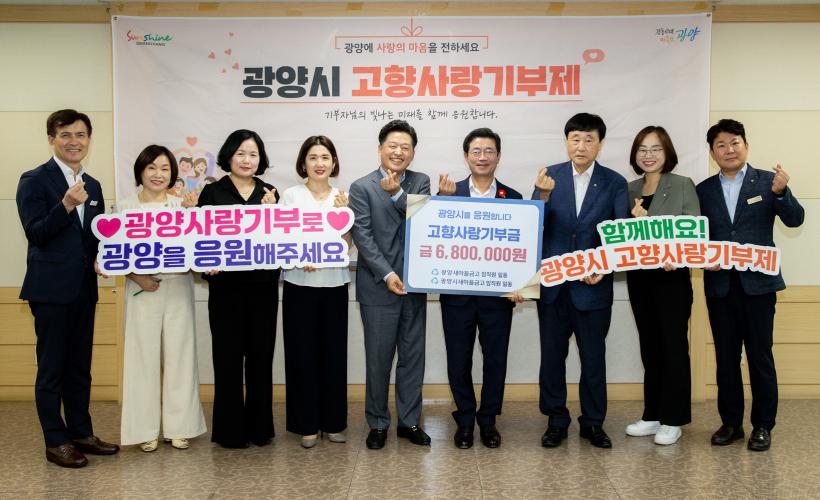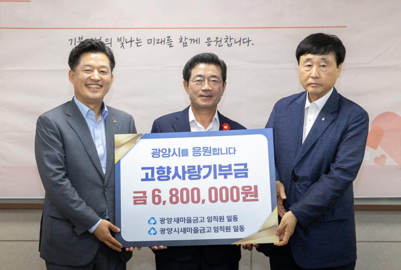[°ø°£´º½º = ±è¿ëÁø±âÀÚ] ±¤¾ç½Ã´Â 9ÀÏ ±¤¾ç»õ¸¶À»±Ý°í¿Í ±¤¾ç½Ã»õ¸¶À»±Ý°í ÀÓÁ÷¿ø 68¸íÀÌ °íÇâ»ç¶û±âºÎÁ¦ Ȱ¼ºÈ¿Í ±âºÎ¹®È È®»êÀ» À§ÇØ »óÈ£±âºÎ¿¡ µ¿ÂüÇØ °íÇâ»ç¶û±âºÎ±Ý 680¸¸ ¿øÀ» Àü´ÞÇß´Ù°í ¹àÇû´Ù.
