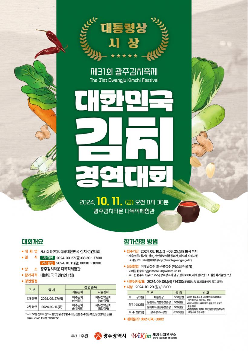[°ø°£´º½º = ±è¼ö±Ù±âÀÚ] ±¤ÁÖ±¤¿ª½Ã(½ÃÀå °±âÁ¤)´Â ¡®2024 ´ëÇѹα¹ ±èÄ¡ °æ¿¬´ëȸ¡¯ Âü°¡ÀÚ¸¦ ¿À´Â 16ÀϺÎÅÍ 25ÀϱîÁö ¸ðÁýÇÑ´Ù.