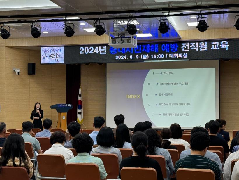 [°ø°£´º½º = ±è¿ëÁø±âÀÚ] ¼øÃµ½Ã(½ÃÀå ³ë°ü±Ô)´Â Áö³ 9ÀÏ ½Ãû ´ëȸÀÇ½Ç ÁýÇÕ±³À°°ú û³» CATV¸¦ ÅëÇØ ÀüÁ÷¿øÀ» ´ë»óÀ¸·Î Áß´ëÀçÇØ ¿¹¹æ ±³À°À» ½Ç½ÃÇß´Ù°í ¹àÇû´Ù.