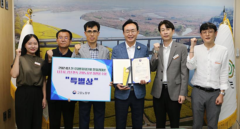 [°ø°£´º½º = Àå¿ÁÁø±âÀÚ] Àü¶ó³²µµ ³ªÁÖ½Ã(½ÃÀå À±º´ÅÂ)´Â °í¿ë³ëµ¿ºÎ°¡ ÁÖ°üÇÏ´Â ¡®Àü±¹ Áö¹æÀÚÄ¡´Üü ÀÏÀÚ¸® ´ë»ó¡¯ °ø½ÃÁ¦ ºÎ¹®¼ Ưº°»óÀÎ °í¿ë³ëµ¿ºÎ Àå°ü»óÀ» ¹Þ¾Ò´Ù°í 13ÀÏ ¹àÇû´Ù.