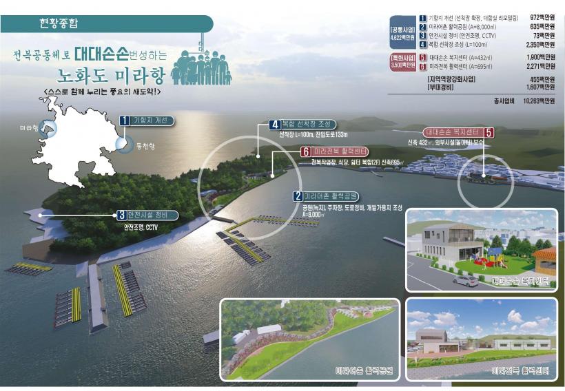 ÃÑ »ç¾÷ºñ 102¾ï ¿øÀÌ ÅõÀԵǸç, ¹Ì¶ó Àüº¹ Ȱ·Â ¼¾ÅÍ, ´ë´ë¼Õ¼Õ º¹Áö¼¾ÅÍ, ¹Ì¶ó ¾îÃÌ È°·Â °ø¿ø, º¹ÇÕ ¼±ÂøÀå Á¶¼º, µ¿ÃµÇ× ±âÇ×Áö °³¼±, ¾ÈÀü½Ã¼³ Á¤ºñ µîÀ» ÃßÁøÇÑ´Ù.