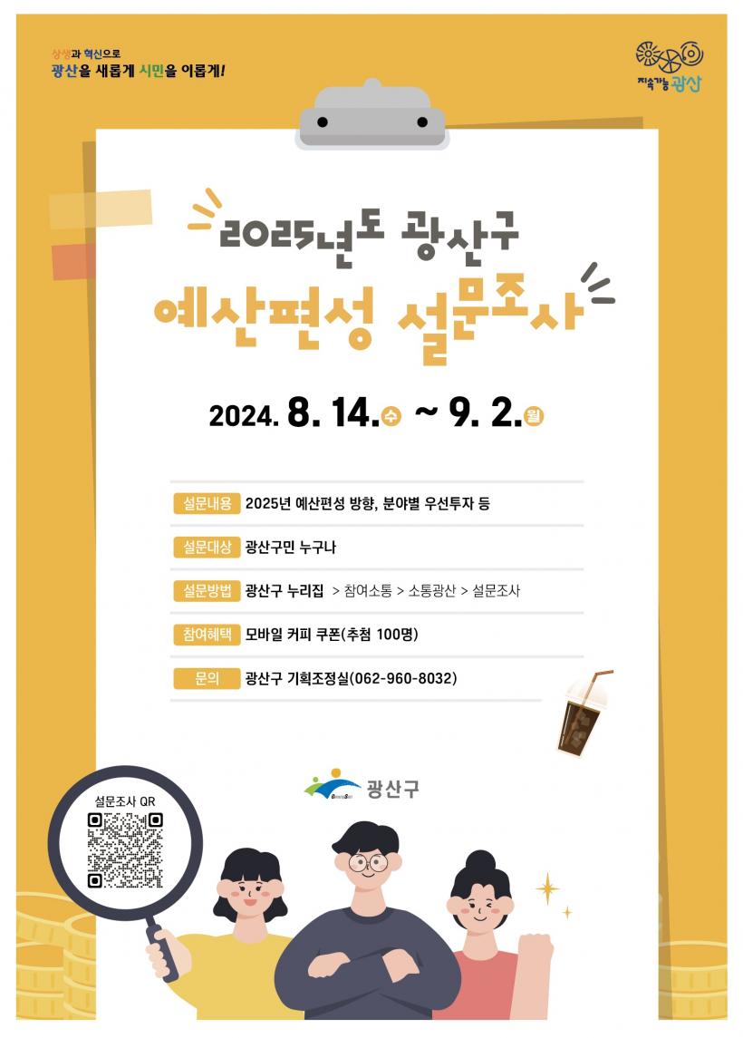 [°ø°£´º½º = ±è´ë¿µ±âÀÚ] ±¤ÁÖ ±¤»ê±¸(±¸Ã»Àå ¹Úº´±Ô)´Â 2025³âµµ ¿¹»êÆí¼º¿¡ ¾Õ¼ ½Ã¹Î ¸ñ¼Ò¸®¿¡ ±âÃÊÇØ Àç¿øÀ» ÇÕ¸®ÀûÀ¸·Î ¹èºÐÇϰí, È¿À²¼ºÀ» Á¦°íÇϰíÀÚ 9¿ù 2ÀϱîÁö ¡®2025³â ¿¹»êÆí¼º °ü·Ã ¼³¹®Á¶»ç¡¯¸¦ ÇÑ´Ù°í ¹àÇû´Ù.