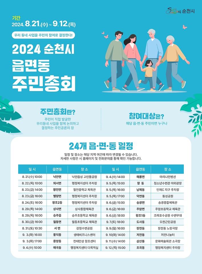 [°ø°£´º½º = ±è¿ëÁø±âÀÚ] ¼øÃµ½Ã(½ÃÀå ³ë°ü±Ô)´Â 24°³ À¾¸éµ¿ ÁÖ¹ÎÀÚġȸ°¡ ¿À´Â 21ÀÏ ³«¾È¸é ÁÖ¹ÎÃÑȸ¸¦ ½ÃÀÛÀ¸·Î 9¿ù 12ÀϱîÁö¡®ÁÖ¹ÎÃÑȸ¡¯¸¦ °³ÃÖÇÑ´Ù°í ¹àÇû´Ù.