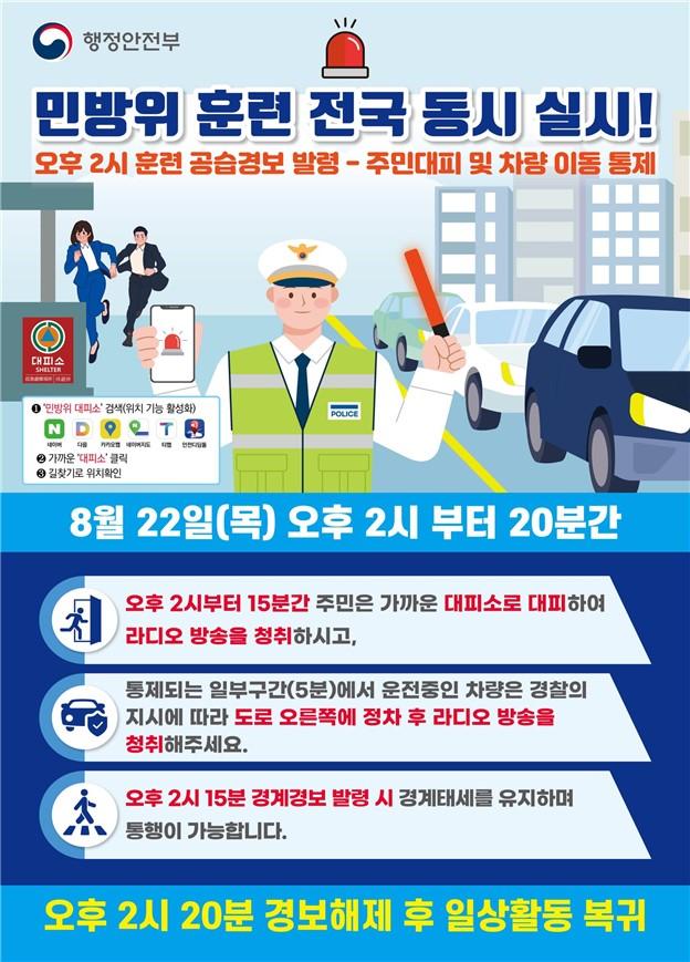 ¿ÀÈÄ 2½Ã15ºÐ ÈÆ·Ã °æ°è°æº¸°¡ ¹ß·ÉµÇ¸é ½Ã¹ÎÀº ´ëÇǼҿ¡¼ ³ª¿Í °æ°è ż¼¸¦ À¯ÁöÇÏ¸é¼ ÅëÇàÀÌ °¡´ÉÇÏ´Ù. ÀÌ¾î ¿ÀÈÄ 2½Ã20ºÐ ÈÆ·Ã °ø½À°æº¸°¡ ÇØÁ¦µÇ¸é ÀÏ»óÀ¸·Î º¹±ÍÇÏ¸é µÈ´Ù.