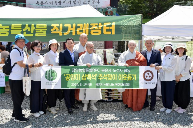 ƯÈ÷ À̳¯ Çà»ç¿¡´Â ¹æ»ý ¹ýȸÀÇ ÃëÁö¸¦ »ì·Á Ãß¼®À» ¾ÕµÎ°í ºÒ¿ìÀÌ¿ôÀ» À§ÇÑ ¡®°ø¾ç¹Ì 300¼®¡¯ ±âʽĵµ ÇÔ²² ÁøÇàÇß´Ù. ºÀÀº»ç¿Í µµ¼±»ç ½ÅµµµéÀÌ 200¼®, ´ã¾ç½ÒÁ¶ÇÕ°øµ¿¹ýÀÎ(´ã¾çÅëÇÕRPC)¿¡¼ 100¼®À» ±âºÎÇßÀ¸¸ç, ±âŹµÈ ½ÒÀº °ü³» ¾î·Á¿î ÀÌ¿ôµé¿¡°Ô Ãß¼® Àü ¹èºÎÇÒ °èȹÀÌ´Ù.