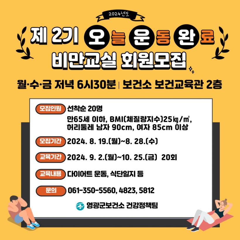 [°ø°£´º½º = ±è¼ö±Ù±âÀÚ] ¿µ±¤±ºÀº Áö¿ªÁÖ¹ÎÀÇ ºñ¸¸¿¹¹æ°ü¸®¿Í ÀÚ°¡ °Ç°ÁõÁø ´É·Â Çâ»óÀ» À§ÇØ ¿À´Â 9¿ù 2ÀϺÎÅÍ 10¿ù 25ÀϱîÁö ¸ÅÁÖ ÁÖ 3ȸ, ÃÑ 8ÁÖ°£ Á¦2±â ºñ¸¸ ¿¹¹æ°ü¸® ±³½ÇÀ» ¿î¿µÇÑ´Ù°í ¹àÇû´Ù.