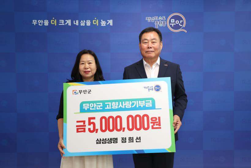 [°ø°£´º½º = Àå¿ÁÁø±âÀÚ] Àü³² ¹«¾È±º(±º¼ö ±è»ê)Àº »ï¼º»ý¸í Á¤Èñ¼± ¼³°è»ç°¡ À۳⿡ ÀÌ¾î ¿ÃÇØµµ ¹«¾È±º¿¡ °íÇâ»ç¶û±âºÎ±Ý 500¸¸¿øÀ» ±âŹÇϰí Áö¿ª ¹ßÀü¿¡ µû¶æÇÑ ÀÀ¿øÀ» º¸³Â´Ù°í 21ÀÏ ¹àÇû´Ù.