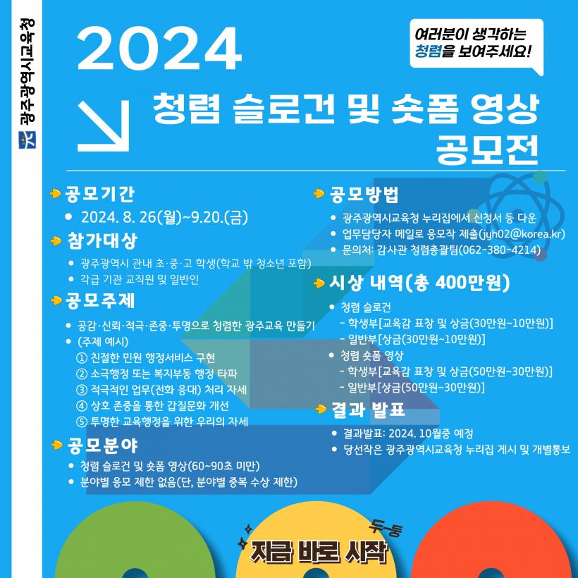 [°ø°£´º½º = ±è¼ö±Ù±âÀÚ] ±¤Áֽñ³À°Ã»Àº û·ÅÇÑ ±¤ÁÖ±³À°¿¡ ´ëÇÑ ÀνÄÀ» Á¦°íÇϰí û·Å ¹®È¸¦ È®»ê½Ã۱â À§ÇØ ¡®2024 ±¤ÁÖ±³À° û·Å ÄÜÅÙÃ÷ °ø¸ðÀü¡¯À» °³ÃÖÇÑ´Ù.
