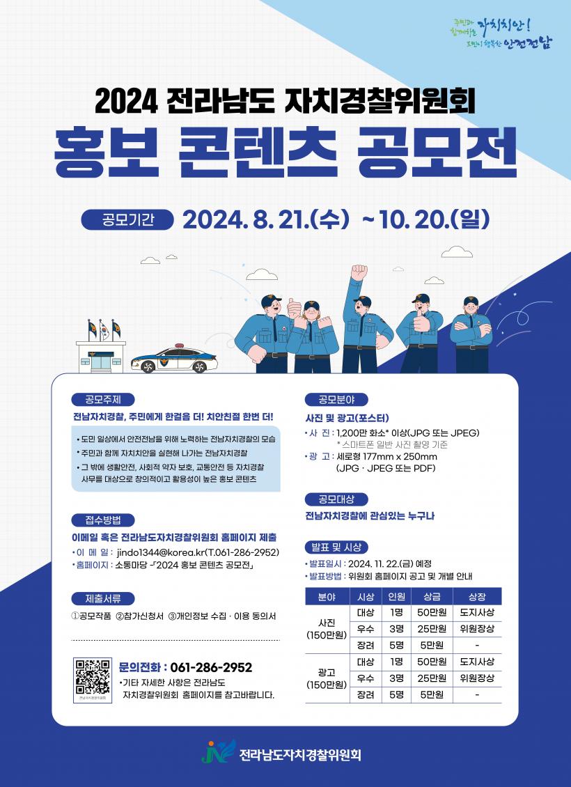 [°ø°£´º½º = ±è¼ö±Ù±âÀÚ] Àü¶ó³²µµÀÚÄ¡°æÂûÀ§¿øÈ¸(À§¿øÀå Á¤¼ø°ü)´Â µµ¹ÎÀÌ Âü¿©ÇÏ´Â ÀÚġġ¾È ±¸ÇöÀ» À§ÇØ ¿À´Â 10¿ù 20ÀϱîÁö 2024 Àü³²ÀÚÄ¡°æÂû È«º¸ ÄÜÅÙÃ÷ °ø¸ðÀüÀ» °³ÃÖÇÑ´Ù°í ¹àÇû´Ù.