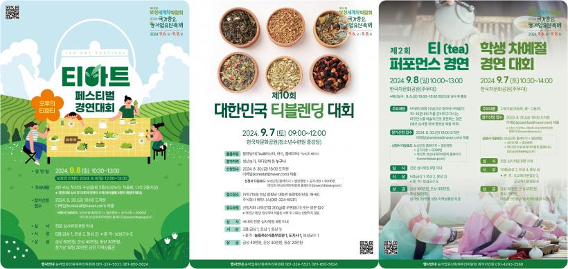 õ³âÀ» À̾î¿Â º¸¼º Â÷´Â Çãºê, °úÀÏ µîÀ» Ȱ¿ëÇØ Â÷ÀÇ »õ·Î¿î ¸ÀÀ» âÁ¶ÇÏ´Â Á¦10ȸ ´ëÇѹα¹ Ƽ ºí·»µù ´ëȸ, ³ìÂ÷ÀüÅëÂ÷, ³ìÂ÷±â°èÂ÷, È«Â÷, ûÂ÷, ȲÂ÷ 5°³ ºÎ¹®ÀÇ ¿ì¿À» °¡¸®´Â Á¦12ȸ ¼¼°è Â÷ ǰÆò´ëȸ, Â÷¸¦ ÁغñÇÏ°í ¸¶½Ã´Â µ¿ÀÛÀ» ¿¹¼úÀûÀ¸·Î Ç¥ÇöÇÏ´Â Á¦2ȸ Ƽ ÆÛÆ÷¸Õ½º °æ¿¬, ÇлýµéÀÇ Â÷ ¿¹¹ýÀ» º¼ ¼ö ÀÖ´Â Çлý Â÷ ¿¹Àý °æ¿¬´ëȸ·Î ¸¸³ªº¼ ¼ö ÀÖ´Ù.