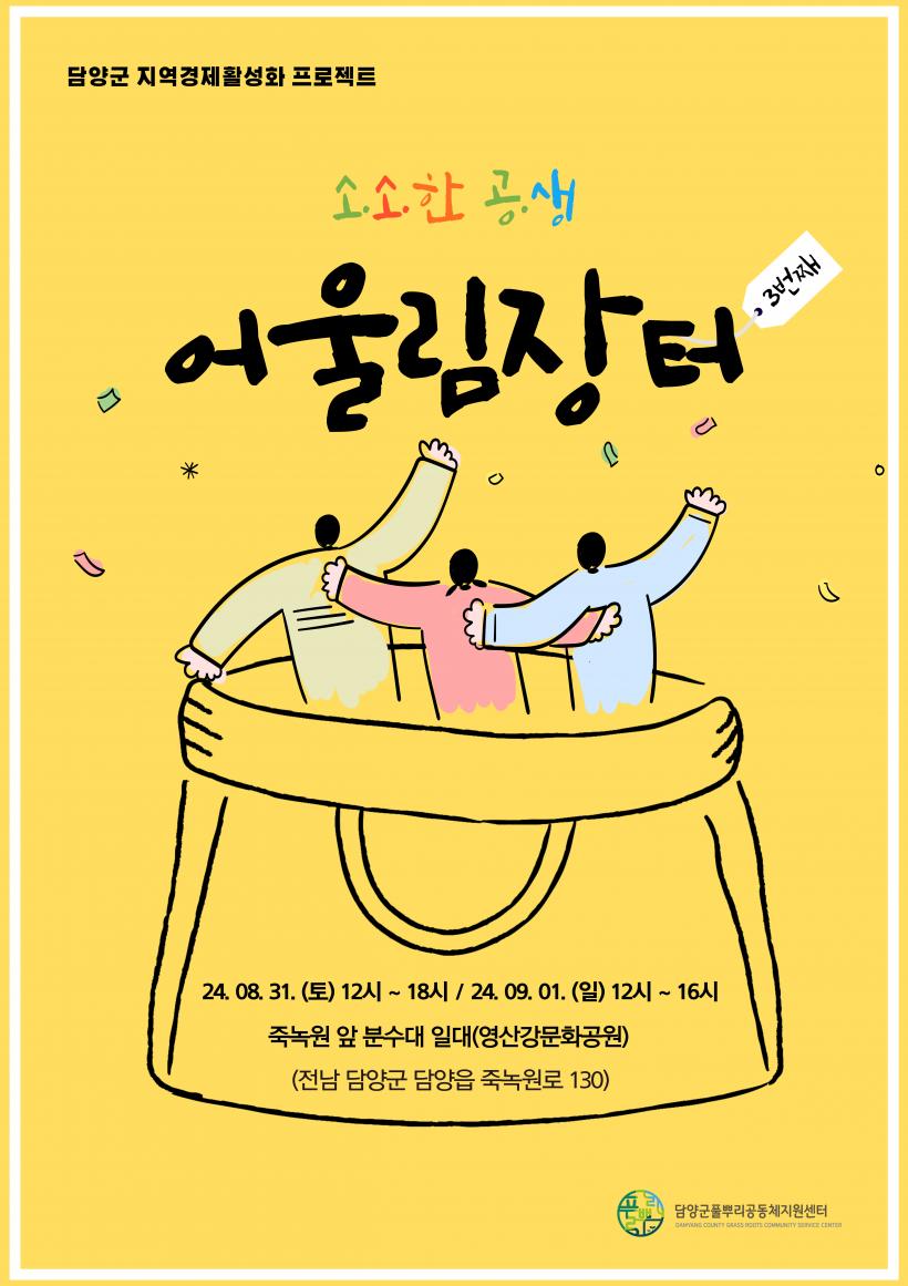 [°ø°£´º½º = ±è¼ö±Ù±âÀÚ] ´ã¾ç±º°ú ´ã¾ç±ºÇ®»Ñ¸®°øµ¿Ã¼Áö¿ø¼¾ÅͰ¡ ¿À´Â 8¿ù 31ÀϺÎÅÍ 9¿ù 1ÀϱîÁö ¿µ»ê° ¹®È°ø¿ø ÀÏ´ë¿¡¼ ¡®¼Ò¼ÒÇÑ °ø»ý, ¾î¿ï¸²ÀåÅÍ¡¯¸¦ °³ÃÖÇÑ´Ù.