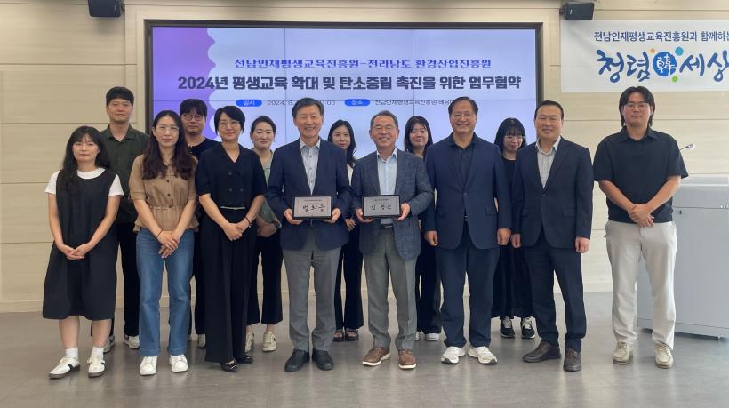[°ø°£´º½º = ±è¼ö±Ù±âÀÚ] Àü¶ó³²µµÀÎÀçÆò»ý±³À°ÁøÈï¿ø(¿øÀå ¹üÈñ½Â)Àº 26ÀÏ Àü³²µµÈ¯°æ»ê¾÷ÁøÈï¿ø°ú ÇÔ²² ¡®Àü³²ÀÇ Æò»ý±³À° È®´ë ¹× ź¼ÒÁ߸³ ÃËÁø¡¯À» À§ÇÑ ¾÷¹«Çù¾àÀ» Çß´Ù.