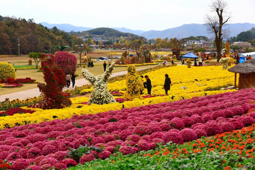 10¿ù °³ÃÖµÉ °¡À»²É ÃàÁ¦´Â ¸í¼º¿¡ °É¸Â°Ô ȼø µµ°î¸é È¿»ê¸® µî 4ha¿¡ À̸£´Â ±¤È°ÇÑ °ø°£¿¡ ±¹È, ÄÚ½º¸ð½º, ÇØ¹Ù¶ó±â, ¸Çµå¶ó¹Ì µî °æ°ü ÀÛ¹° 10Á¾À» ½ÄÀçÇϰí, ÇθŹÙÀ§ ²É Á¶Çü¹° µî 68Á¾ 174Á¡À» ÃàÁ¦Àå °÷°÷¿¡ ¹èÄ¡ÇÑ´Ù.