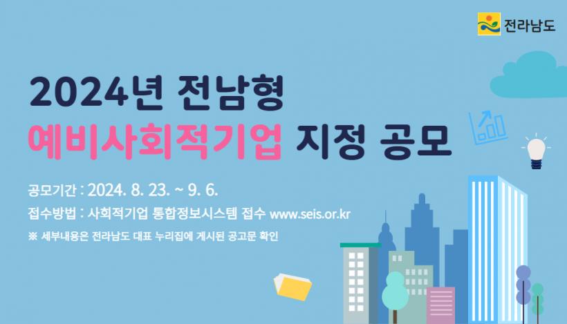 [°ø°£´º½º = ±è¼ö±Ù±âÀÚ] Àü¶ó³²µµ´Â 2024³â Àü³²Çü ¿¹ºñ»çȸÀû±â¾÷ ÁöÁ¤À» Èñ¸ÁÇÏ´Â ±â¾÷À» ¿À´Â 9¿ù 6ÀϱîÁö °ø¸ðÇÑ´Ù°í ¹àÇû´Ù.
