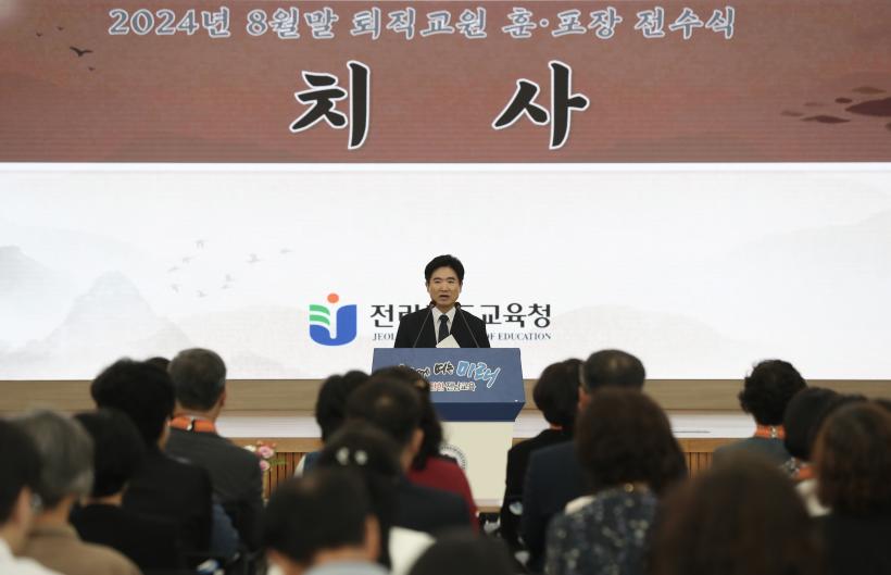 [°ø°£´º½º = ±è¼ö±Ù±âÀÚ] Àü¶ó³²µµ±³À°Ã»(±³À°°¨ ±è´ëÁß)Àº 28ÀÏ Ã»»ç ´ëȸÀǽǿ¡¼ 2024³â 8¿ù ¸» ÅðÁ÷±³¿ø ÈÆ¡¤Æ÷Àå Àü¼ö½ÄÀ» °³ÃÖÇß´Ù.