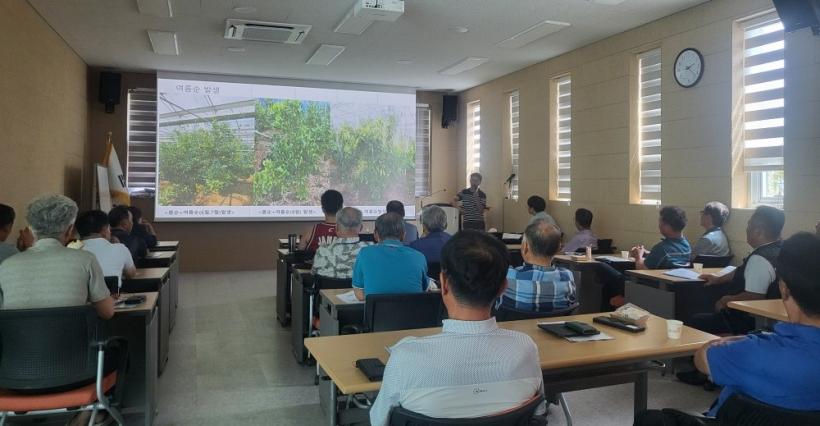 [°ø°£´º½º = Àå¿ÁÁø±âÀÚ] Áøµµ±º ³ó¾÷±â¼ú¼¾ÅÍ´Â ¸¸°¨·ù Àç¹è ¹× °ü½É ³ó°¡ ¾à 30¸íÀÌ Âü¼®ÇÑ °¡¿îµ¥, 5¿ùºÎÅÍ 8¿ù±îÁö 3Â÷·Ê¿¡ °ÉÃÄ ±âº» Àç¹è½Ã±â¿¡ ÀûÇÕÇÑ °ü¿ø °ü¸® ±³À° µî ¸¸°¨·ù ±â¼ú±³À°À» Çß´Ù.