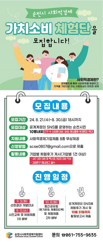 [°ø°£´º½º = ±è¿ëÁø±âÀÚ] ¼øÃµ½Ã(½ÃÀå ³ë°ü±Ô)´Â 9¿ùºÎÅÍ 10¿ù±îÁö ¿ì¸®Áö¿ª »çȸÀû°æÁ¦±â¾÷ Á¦Ç°À» üÇèÇϰí SNS¸¦ ÅëÇØ Á¦Ç° È«º¸¸¦ ÇÏ´Â ¡®°¡Ä¡¼Òºñ üÇè´Ü¡¯À» ¿î¿µÇÑ´Ù°í ¹àÇû´Ù.