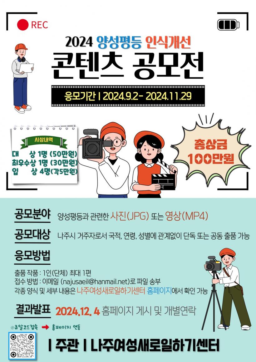 [°ø°£´º½º = Àå¿ÁÁø±âÀÚ] Àü¶ó³²µµ ³ªÁÖ½Ã(½ÃÀå À±º´ÅÂ)´Â ¾ç¼ºÆòµî¿¡ ´ëÇÑ ÀÎ½Ä °³¼±°ú »çȸÀû °ü½ÉÀ» Ã˱¸Çϱâ À§ÇØ ¿À´Â 9¿ù 2ÀϺÎÅÍ 11¿ù 29ÀϱîÁö ³ªÁÖ¿©¼º»õ·ÎÀÏÇϱ⼾ÅÍ(¼¾ÅÍÀå ÃÖÁø¾Æ)¿¡¼ '2024³â ¾ç¼ºÆòµî Àνݳ¼± °ø¸ðÀü¡®À» °³ÃÖÇÑ´Ù°í 30ÀÏ ¹àÇû´Ù.
