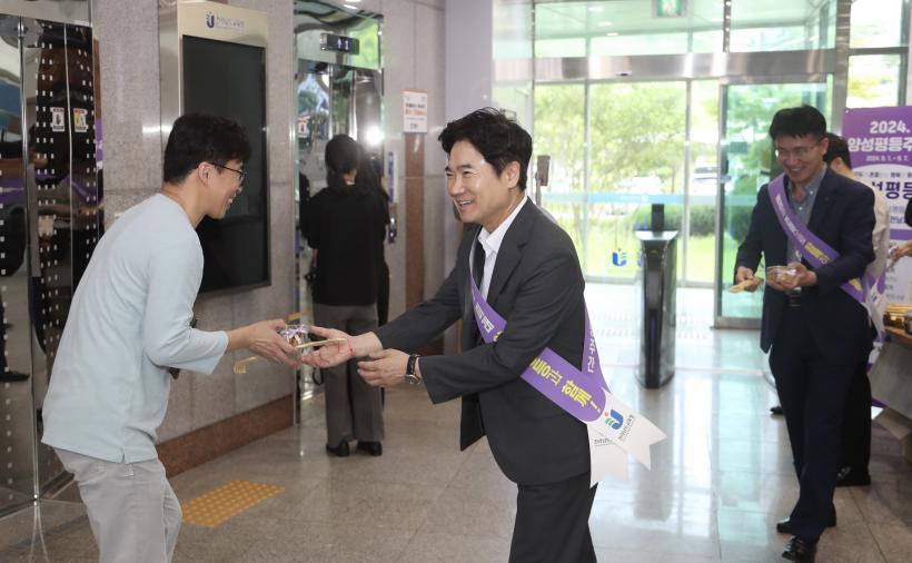 ±è´ëÁß ±³À°°¨Àº 9¿ù 3ÀÏ ¿ÀÀü Ãâ±Ù±æ¿¡ û»ç 1Ãþ¿¡¼ ¡®È¿µµ¼Õ¡¯À» Á÷Á¢ °Ç³×´Â Çà»ç¸¦ ÅëÇØ Ãâ±ÙÇÏ´Â Á÷¿øµé°ú ¾ç¼ºÆòµîÀÇ ¸¶À½À» ³ª´³´Ù.