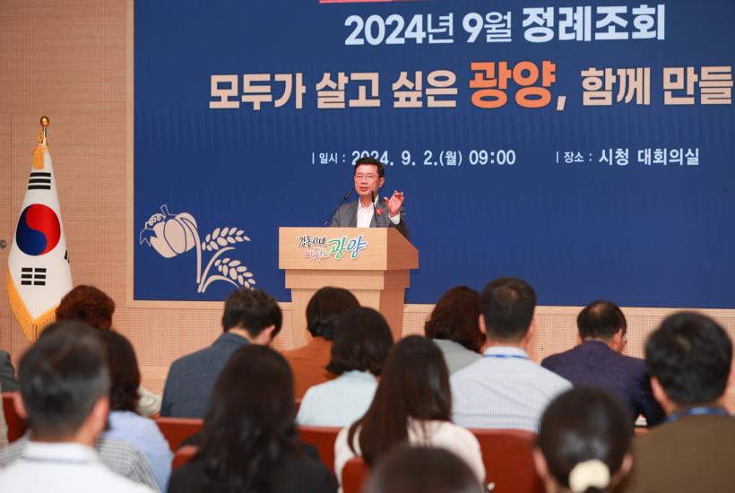 [°ø°£´º½º = ±è¿ëÁø±âÀÚ] ±¤¾ç½Ã(½ÃÀå Á¤ÀÎÈ)´Â Áö³ 9¿ù 2ÀÏ ½Ãû ´ëȸÀǽǿ¡¼ °øÁ÷ÀÚ 150¿© ¸íÀÌ Âü¼®ÇÑ °¡¿îµ¥ 9¿ù Á¤·Ê Á¶È¸¸¦ °³ÃÖÇß´Ù°í ¹àÇû´Ù.