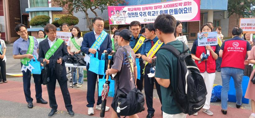 [°ø°£´º½º = ±è¼ö±Ù±âÀÚ] ȼø±³À°Áö¿øÃ»(Á¶¿µ·¡ ±³À°Àå)Àº Áö³ 3ÀÏ ¾ÆÄ§ ±³Åë·®ÀÌ ¸¹Àº ȼøÁßÇб³ Á¤¹®¿¡¼ ȼø±ºÃ», ȼø°æÂû¼, û¼Ò³â»ó´ãº¹Áö¼¾ÅÍ µî À¯°ü±â°ü°ú ȼøÁßÇб³ Çлýȸ, ȼøÇлý»ýȰÁö¿ø´Ü µî 100¿©¸íÀÌ Âü¿©ÇÑ °¡¿îµ¥ µî±·±æ ¡®Çлý±³Åë¾ÈÀü/Çб³Æø·Â¿¹¹æ ÇÕµ¿ Ä·ÆäÀΡ¯À» ½Ç½ÃÇÏ¿´´Ù.