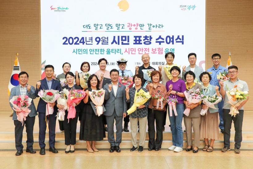 [°ø°£´º½º = ±è¿ëÁø±âÀÚ] ±¤¾ç½Ã´Â Áö³ 9¿ù 3ÀÏ ½Ãû ´ëȸÀǽǿ¡¼ 9¿ù ½ÃÁ¤¹ßÀü À¯°ø ½Ã¹Î ǥâ ¼ö¿©½ÄÀ» °³ÃÖÇØ Áö¿ª»çȸ ¹ßÀü¿¡ °øÇåÇϰí Áö¿ª °÷°÷¿¡¼ ²ÙÁØÇÑ ºÀ»çȰµ¿À» ÆîÃÄ ¿Â ½Ã¹Î 28¸í¿¡°Ô ±íÀº °¨»ç¸¦ ÀüÇß´Ù°í ¹àÇû´Ù.
