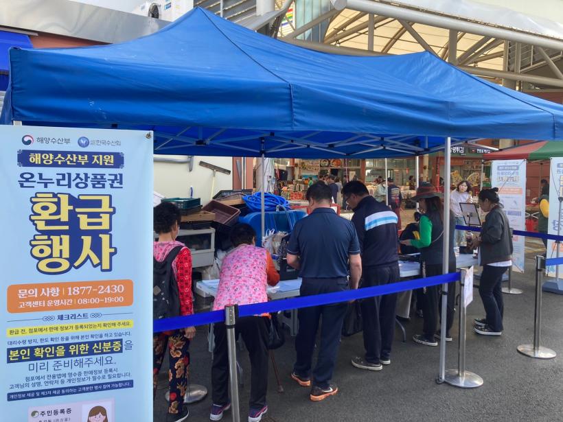 ¶ÇÇÑ, ÇØ¾ç¼ö»êºÎ Áö¿øÀ¸·Î 9ÀϺÎÅÍ 15ÀϱîÁö 7Àϰ£ ÇÔÆòõÁöÀüÅë½ÃÀå¿¡¼ ¿Â´©¸®»óǰ±Ç ȯ±Þ Çà»ç°¡ ÁøÇàµÈ´Ù. Çà»ç ±â°£ µ¿¾È ÀüÅë½ÃÀå ³» ±¹»ê¼ö»ê¹°À» ÆÇ¸ÅÇÏ´Â µµ¡¤¼Ò¸ÅÁ¡¿¡¼ ¼ö»ê¹° ¹× °¡°ø½ÄǰÀ» ±¸¸ÅÇÑ °í°´¿¡°Ô´Â ÃÖ´ë 30%ÀÇ ±Ý¾×À» ¿Â´©¸®»óǰ±ÇÀ¸·Î ȯ±ÞÇØ ÁØ´Ù.