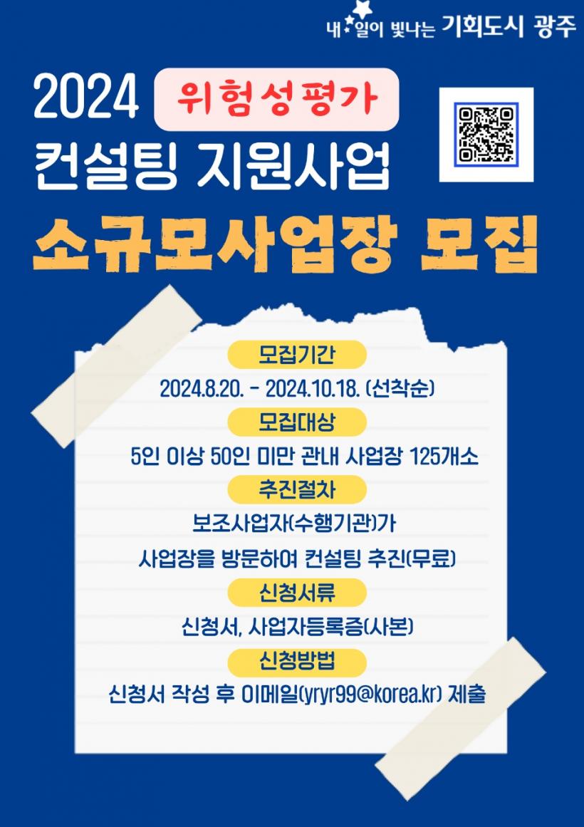 [°ø°£´º½º = ±è¼ö±Ù±âÀÚ] ±¤ÁÖ±¤¿ª½Ã(½ÃÀå °±âÁ¤)´Â ¿À´Â 10¿ù 18ÀϱîÁö »ê¾÷ÀçÇØ ¿¹¹æÀ» À§ÇÑ À§Ç輺Æò°¡ ÄÁ¼³ÆÃÀ» ¹ÞÀ» ¼Ò±Ô¸ð »ç¾÷Àå 125°÷À» ¸ðÁýÇÑ´Ù.