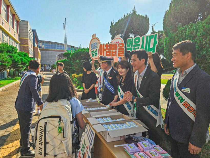 À̹ø Ä·ÆäÀο¡´Â ¹æÇö¿ëÁöºÎÀå°ú °î¼º³óÇù ±è¿Ï¼ú Á¶ÇÕÀå, °î¼º°æÂû¼ Á¤Á¾µÎ ¼ÀåÀÌ Âü¼®, Áß¾ÓÃÊ ³ì»ö¾î¸Ó´Ïȸ¿Í °î¼º¸ð¹ü¿îÀüÀÚȸ ȸ¿øºÐµé°ú ÇÔ²² Áß¾ÓÃÊ Çлý 300¿© ¸í ´ë»óÀ¸·Î µîÇϱ³±æ ±³Åë¹ý±Ô Áؼö¸¦ ¾È³»ÇÏ°í °Ç°ÇÑ ½Ä½À°ü Çü¼ºÀ» À§ÇÑ ¾ÆÄ§¹ä ¸Ô±â¸¦ È«º¸Çß´Ù.