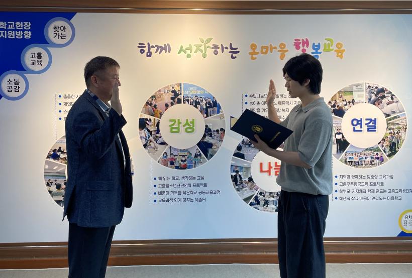 [°ø°£´º½º = ±è¼ö±Ù±âÀÚ] °íÈï±³À°Áö¿øÃ»(±³À°Àå ±ÇÇü¼±)Àº Áö³ 9¿ù 6ÀÏ °íÈï±³À°Áö¿øÃ» ±³À°Àå½Ç¿¡¼ 2024Çг⵵ 9¿ù 1ÀÏÀÚ ÃÊµî ½Å±Ô±³»ç 2¸íÀ» ´ë»óÀ¸·Î ÀÓ¸íÀå ¼ö¿©½ÄÀ» °³ÃÖÇß´Ù.